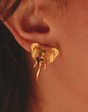 Aretes que celebran al elefante sagrado como símbolo de protección y buena fortuna. Su forma envuelve la oreja mientras los detalles evocan su carácter ceremonial y su fuerza maternal.