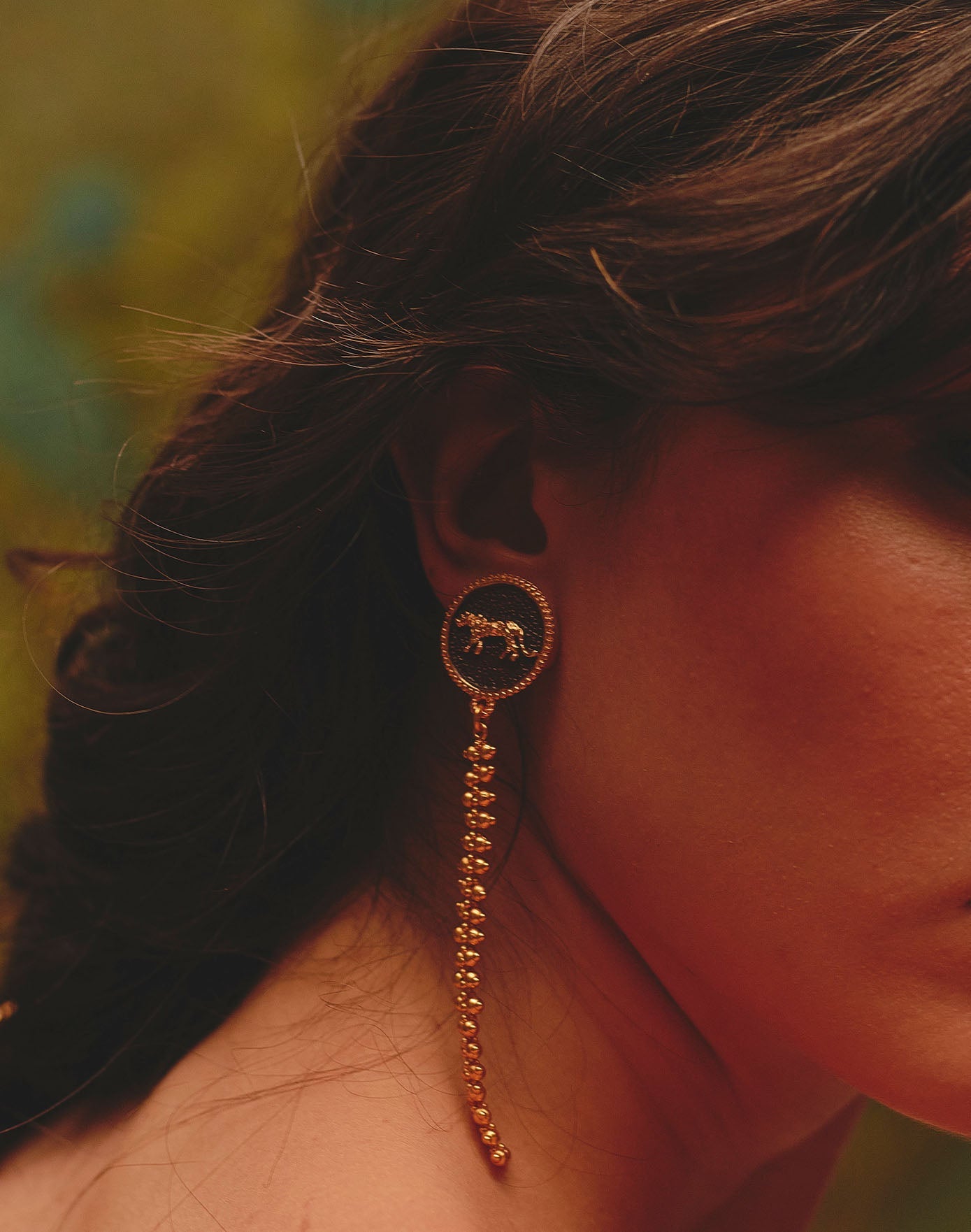 Inspirados en el tigre de Bengala, guardián de la energía y símbolo de valentía, estos pendientes transmiten fuerza serena y carácter en cada detalle.