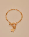 Brilla con estilo llevando esta pulsera de eslabones y broche de timón, combina elegancia minimalista con un toque mágico. Perfecta para quienes aman los detalles sutiles que hacen la diferencia. Úsala sola para un look sofisticado o combínala con otras pulseras para crear tu propio universo de accesorios.