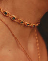 Un set que une el ojo protector, guardián de la energía, con el símbolo Ohm, vibración esencial del universo. Una combinación que conecta intuición, equilibrio y protección.