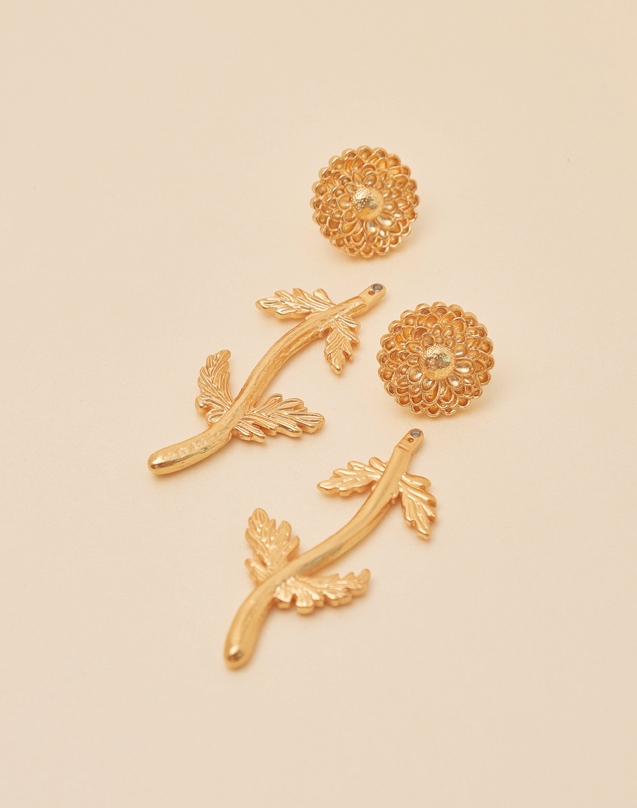 Una versión escultórica del crisantemo en su forma completa. Los tallos largos y líneas suaves evocan la anatomía real de la flor. Gracias a su sistema backfront, pueden usarse solo como topo o con el tallo completo.
