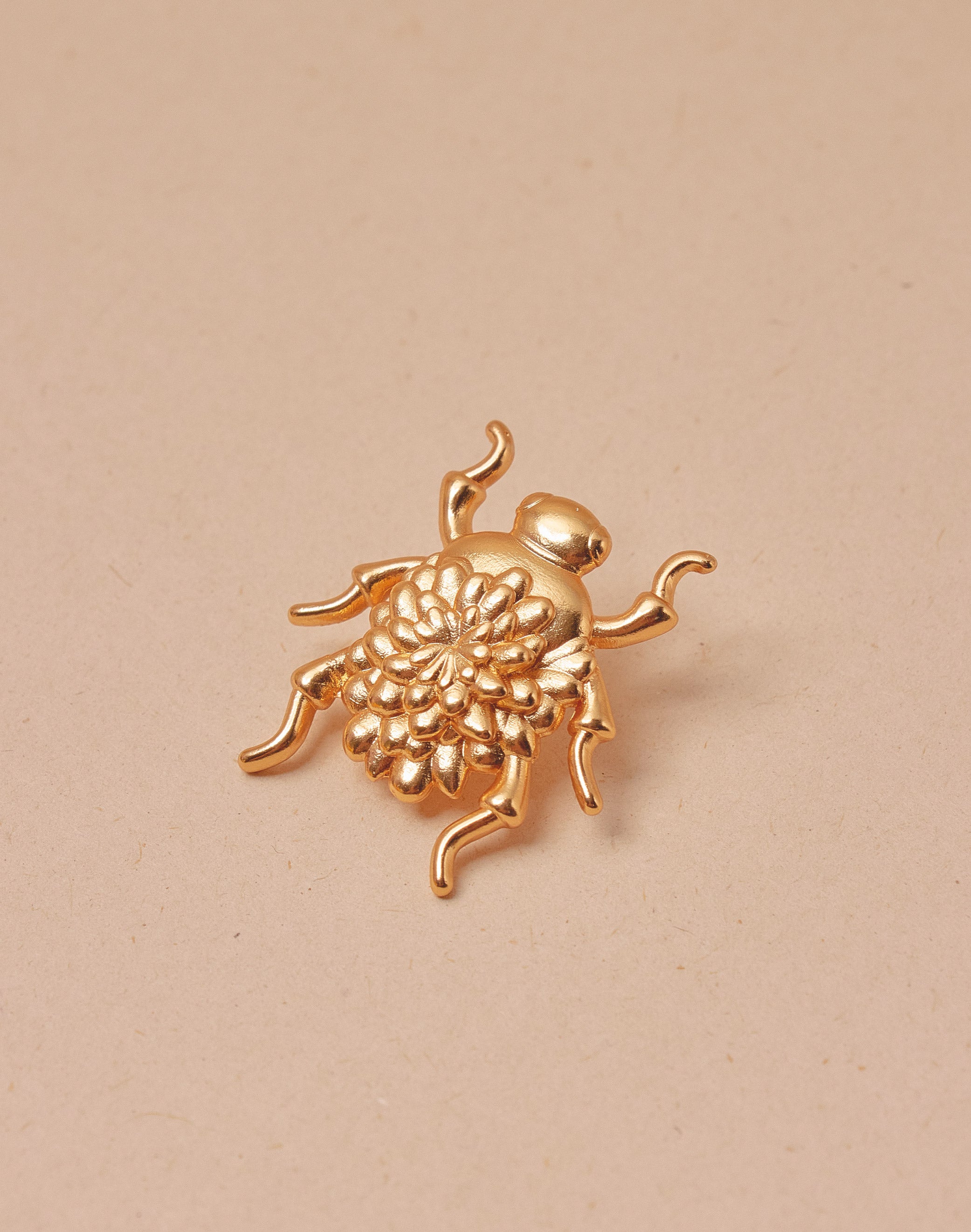 Los guardianes del jardín toman tan en serio su labor que terminan transformándose en flor. El cucarrón ahora florece en su propio cuerpo, la polilla deja que pétalos nazcan en sus alas y el crisantemo en resina degradé captura ese instante donde naturaleza y criatura se vuelven una sola forma.